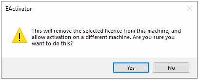 Press Yes on the prompt and the licence will be removed from the PC and returned to the cloud to become available for activation again.